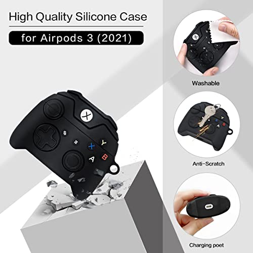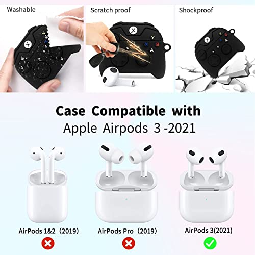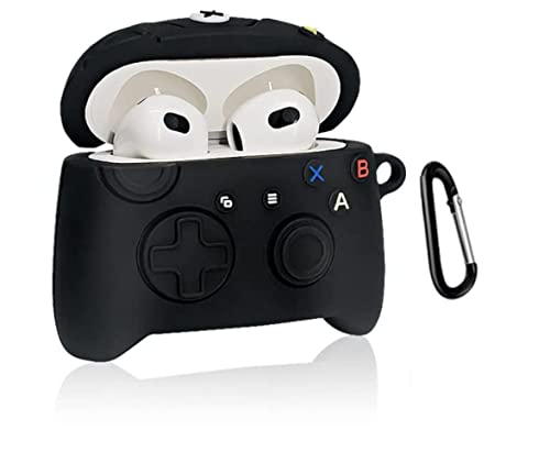 GadgeTEQ - جراب بتصميم لطيف جديد متوافق مع سماعات ابل ايربودز 3 من جادج تيك حماية لكامل الجسم مضاد للصدمات للرجال والنساء حلقة تثبيت اكس بوكس - اسود سيليكون