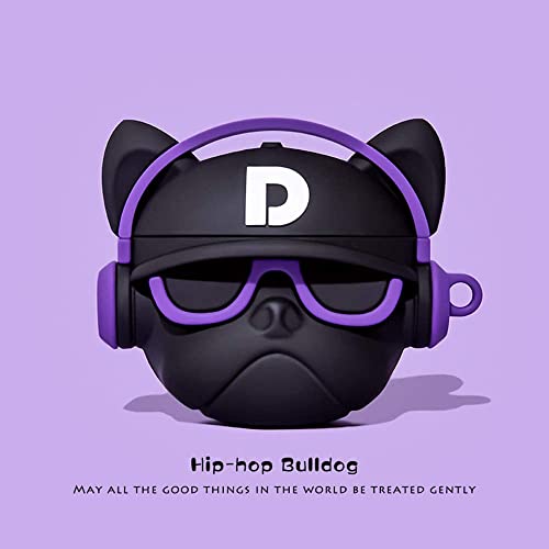 GadgeTEQ - جراب بتصميم لطيف جديد متوافق مع سماعات ابل ايربودز برو الجيل الثاني من جادج تيك، جراب حماية لكامل الجسم مضاد للصدمات للرجال والنساء مع حلقة تثبيت (هيب هوب دوج ارجواني)، سيليكون