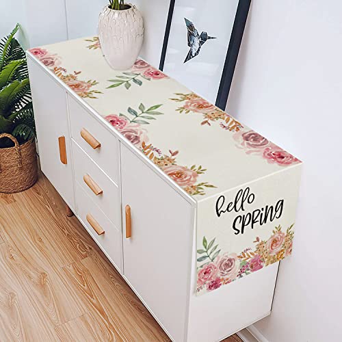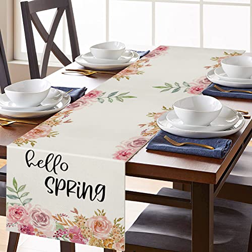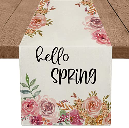 GAGEC - جاجك مفرش طاولة بتصميم زهور الفاوانيا بتصميم هالو سبرينج مقاس 13 × 108 انش من الخيش لبيت المزرعة والاجازات الصيفية وديكورات الطعام ومستلزمات المطبخ المنزلية