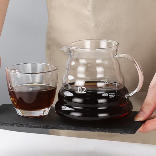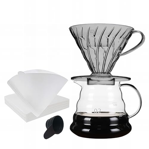 GAHVA - طقم قهوة V60 02 مع فلتر ومنقط ومجموعة تقديم زجاجية وملعقة قياس من قهوا الورق شفاف