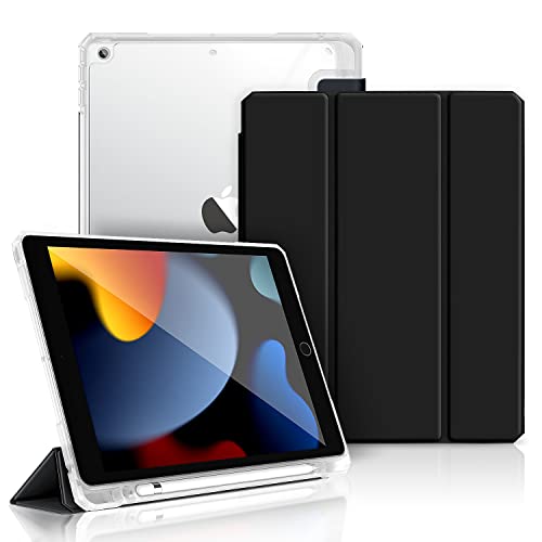 Gahwa - حافظة حماية من جاهوا متوافقة مع آيباد 10.2 بوصة الجيل السابع والثامن والتاسع، غطاء نحيف واقي مصنوع من المايكروفايبر والبولي كاربونيت باللون الأسود