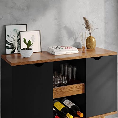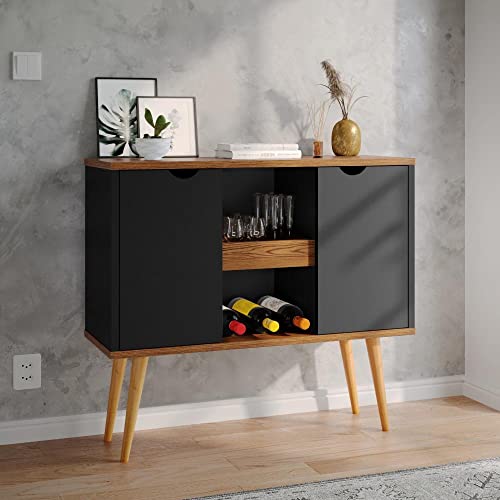 Gaio Marcas e Patentes - دولاب جانبي بتصميم لويز، بوفيه رترو - أسود مع كومارو، خشب مُصنع، من غايو ماركاس اي باتينتس