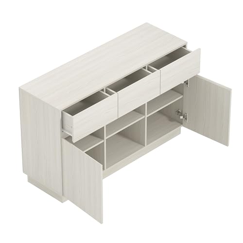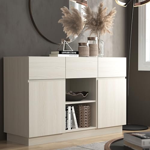 Galano - خزانة جانبية ببابين و3 ادراج من جالانو اندرسون - منظم تخزين منزلي - خزانة جانبية للتخزين - ارفف قابلة للتعديل (بلوط كريمي)