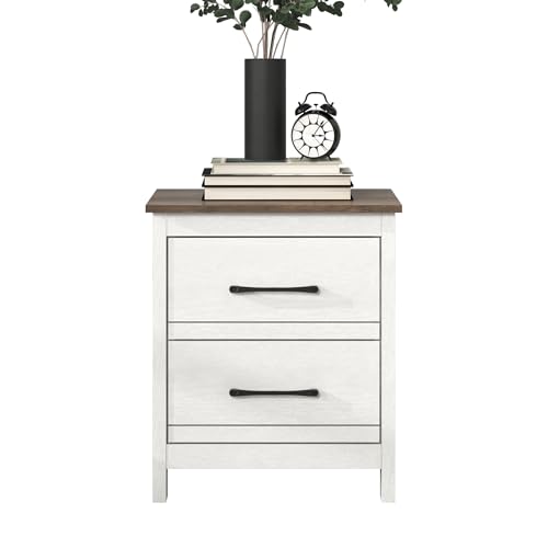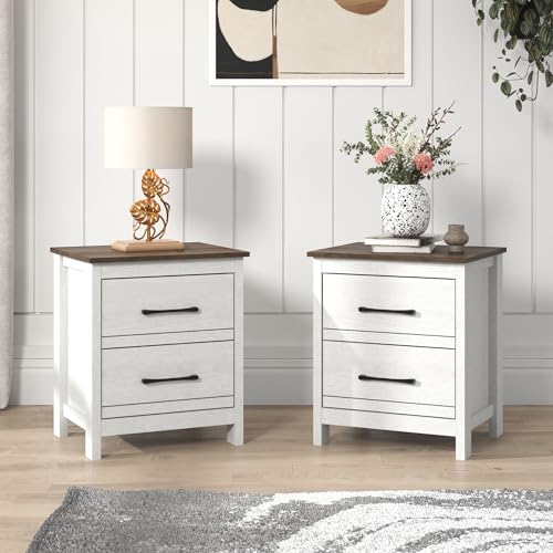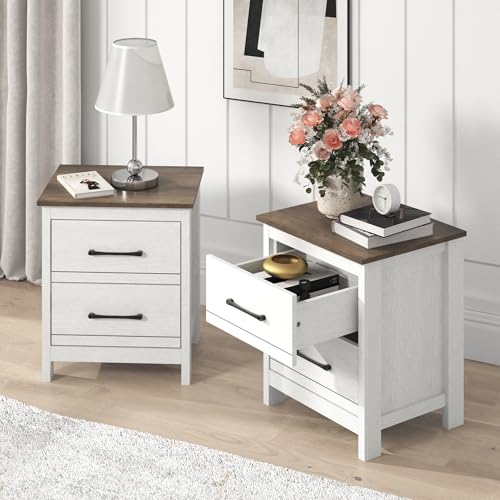 Galano - طاولة جانبية بدرجين من جالانو كيلي (مجموعة من قطعتين) طاولة بجانب السرير لغرفة النوم، طاولة جانبية للاريكة لغرفة المعيشة، عمق 15.7 انش × عرض 18.7 انش × ارتفاع 21.9 انش، بلوط ابيض لؤلؤي + بلوط معقود
