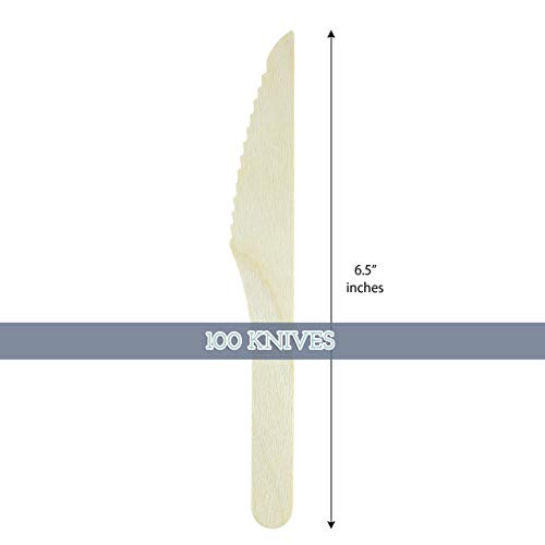 Galashield - سكاكين خشبية للاستعمال مرة واحدة من جالاشيلد - 100 قطعة - طول 6.3 بوصة صديقة للبيئة وقابلة للتحلل الحيوي وسماد مجموعة أدوات المائدة الخشبية أواني خشبية
