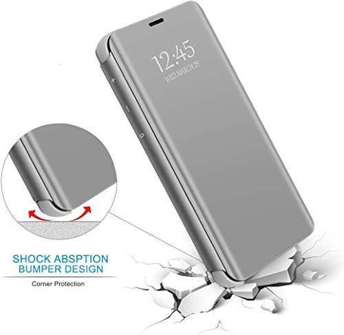 Gxmeuie - جراب حماية جلد مقاوم للصدمات ل سامسونج جالاكسي A53 5G قابل للطي بمسند بمراة كلير فيو للمكياج لسامونج A53 5G A53 5G مع مسند غطاء A53 5G 6.5 بوصة فضي