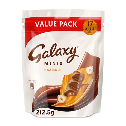 GALAXY - ألواح شوكولاتة صغيرة شوكولا مينيس بالبندق من جالاكسي، شارك لحظات من متعة الشوكولاتة مع شوكولاتة جالاكسي الناعمة والغنية بقطع من البندق، 19 قطعة × 237.5 جرام