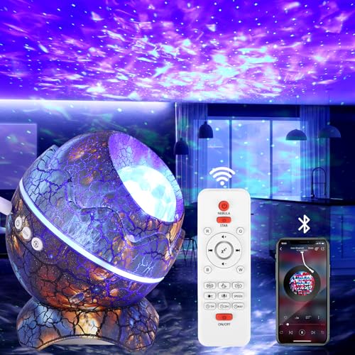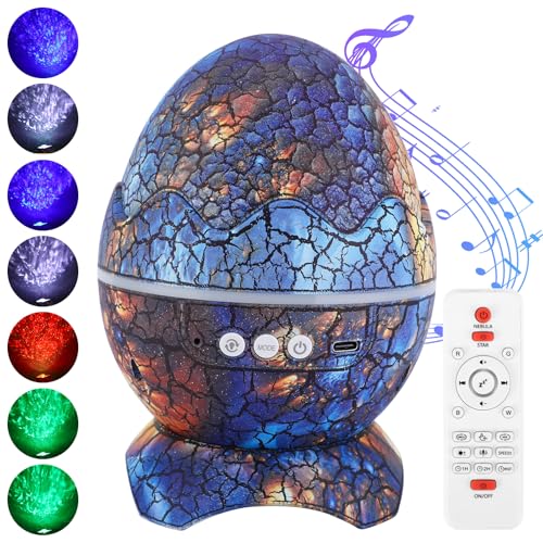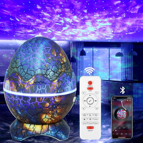 OurLeeme - جهاز عرض بروجكتور بتصميم نجوم المجرة، ضوء ليلي قابل للدوران على شكل بيضة ديناصور مع مكبر صوت ببلوتوث وضوء وجهاز تحكم عن بعد لديكور غرفة النوم للأطفال والكبار من اورليمي
