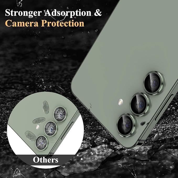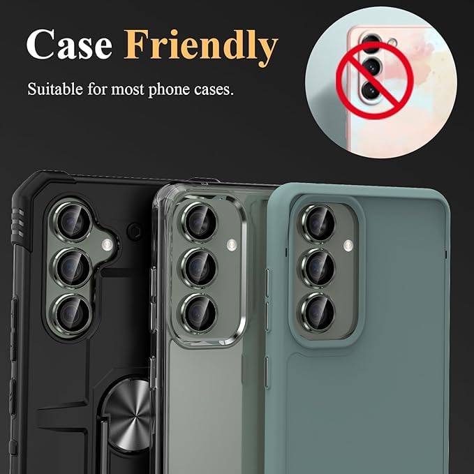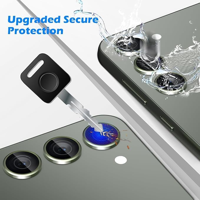 ELMO3EZZ - واقي عدسة كاميرا لموبايل جالاكسي S24 / S23 / S23 بلس 2023 شبكة الجيل الخامس 5G، من زجاج مقوى بدرجة صلابة 9، حلقة حماية معدنية من خليط الألومنيوم (أخضر)