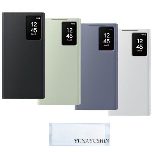 YUNAYUSHIN - حافظة جالكسي S24 الترا، حافظة محفظة سمارت فيو الاصلية، حافظة محفظة سمارت فيو EF-ZS928، مجموعة تنظيف يونايوشين الاجنبية الاصلية (اسود)