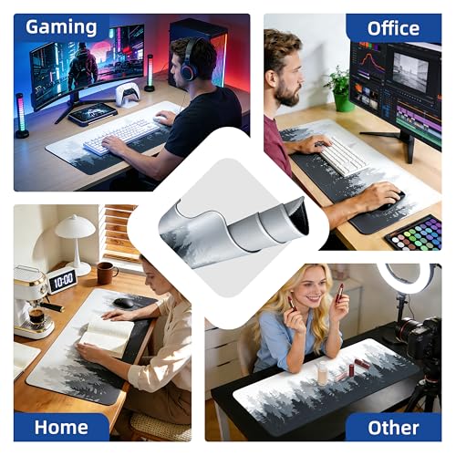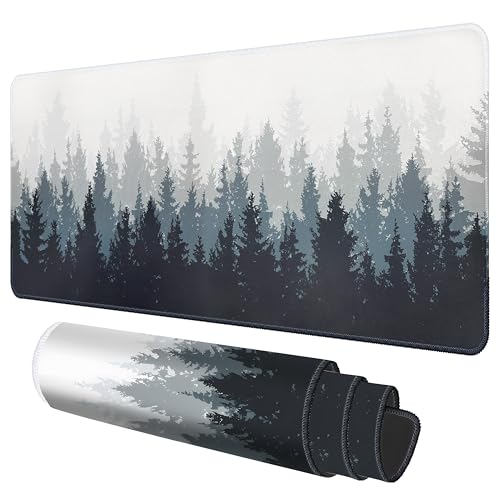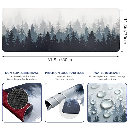 Galdas - قاعدة ماوس للالعاب بنمط خلفية الغابة XXL XL طويلة ممتدة مطاط غير قابلة للانزلاق حواف مخيطة رقيقة 80 × 30 0.20 سم - شجرة من جالداس