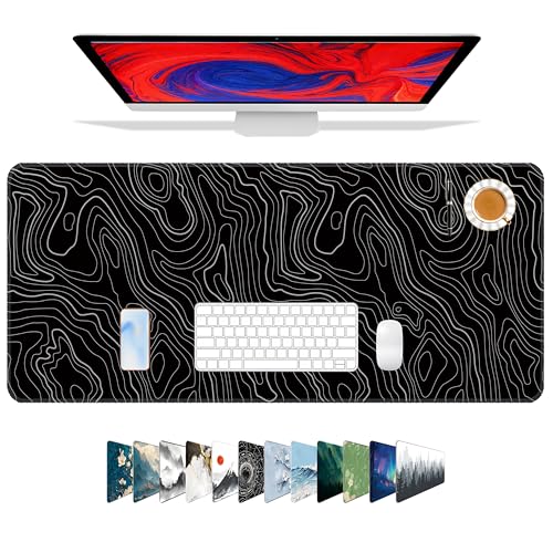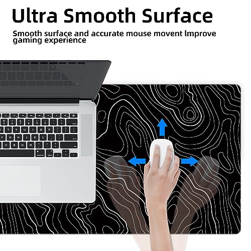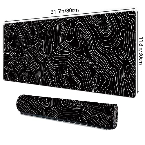 Galdas - قاعدة ماوس للألعاب مقاس XXL XL من جالداس، قاعدة ماوس طويلة ممتدة، قاعدة ماوس مطاطية غير قابلة للانزلاق بحواف مخيطة رفيعة (80 × 30 × 0.3 سم) - خريطة طبوغرافية بلون أسود