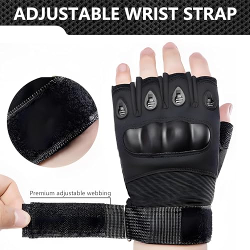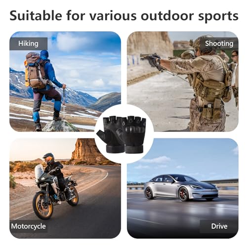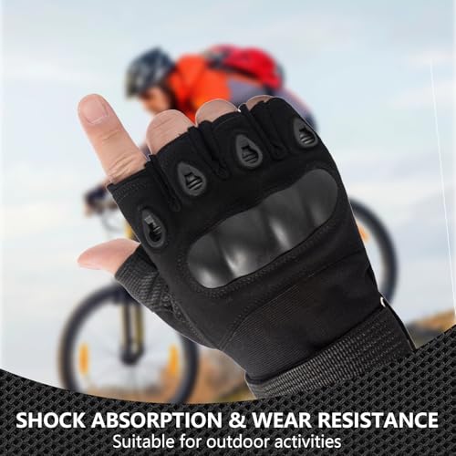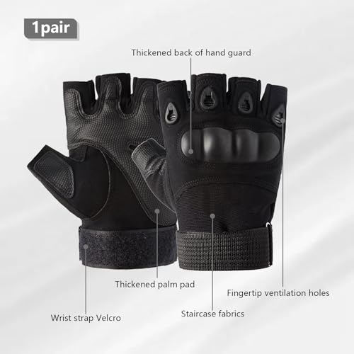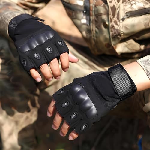 Galenecx - قفازات تكتيكية عسكرية من جالينكس، قفازات نصف اصبع جيدة التهوية، قفازات ركوب الدراجات مع حماية للاصابع، للدراجات النارية، ركوب الدراجات، المشي لمسافات طويلة، التخييم، الصيد (اسود)