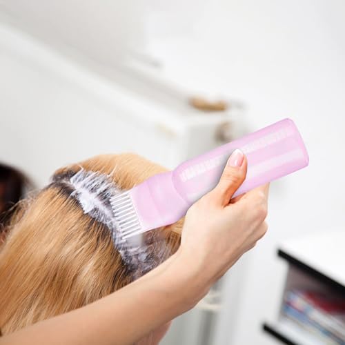 galeyyu - زجاجة توزيع زيت الشعر من جاليو، زجاجة توزيع مشط الجذور، زجاجة فرشاة صبغة الشعر الوردية، فرشاة صبغ الشعر، زجاجة زيت الشعر، زجاجة شامبو صباغة، ادوات شعر مشط زيت، زهري