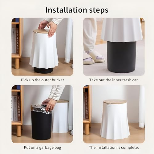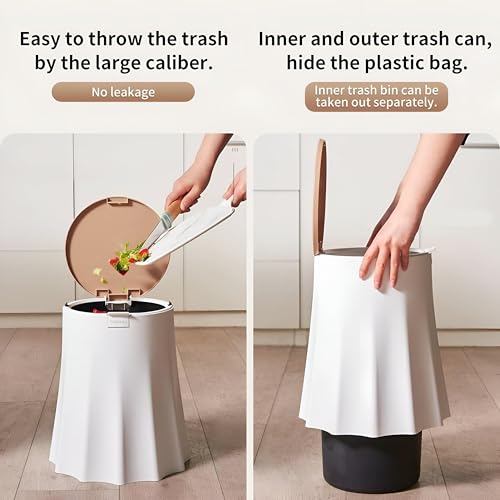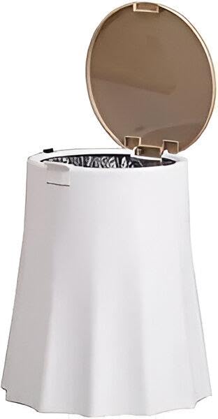 - تتميز بتصميم متطور من طبقتين، حيث أن السلة الداخلية مغطاة بالكامل بغطاء خارجي يخفي أكياس القمامة تمامًا، مما يساعد في الحفاظ على مظهر أنيق مع إخفاء الروائح الكريهة.