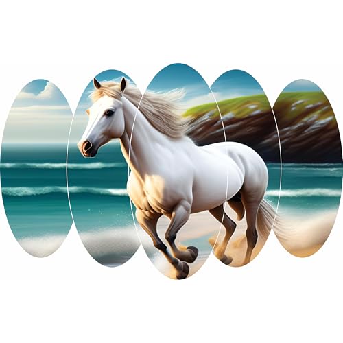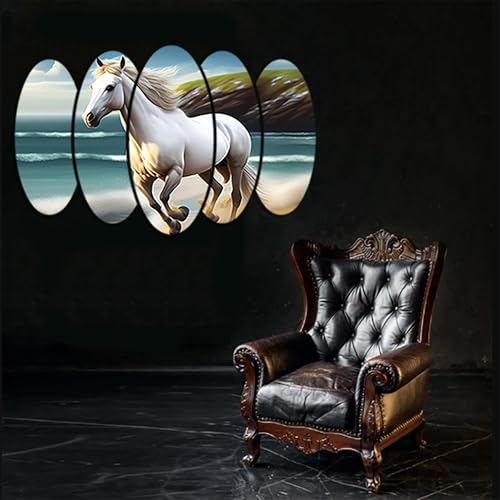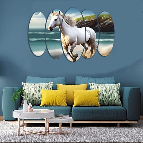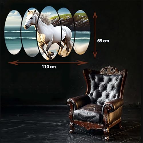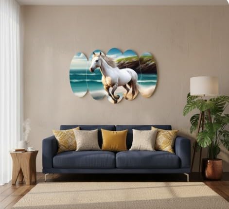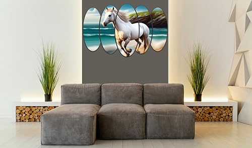 Egypt Decoration - لوحة فنية جدارية خشبية بتصميم حصان من ايجيبت ديكوريشن، 5 الواح ذاتية اللصق، 65 × 110 سم، متعدد الألوان