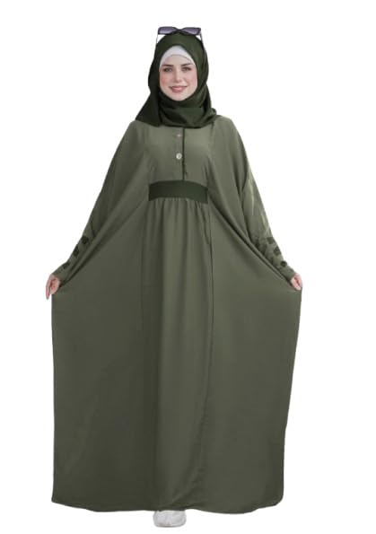 GAMAL SONS FOR ABAYA - عباية نسائية كريب رويال موديل 7008، بتصميم إسلامي، عرض 1.50 م من أبناء جمال للعبايات، كموني / زيتي، مقاس واحد