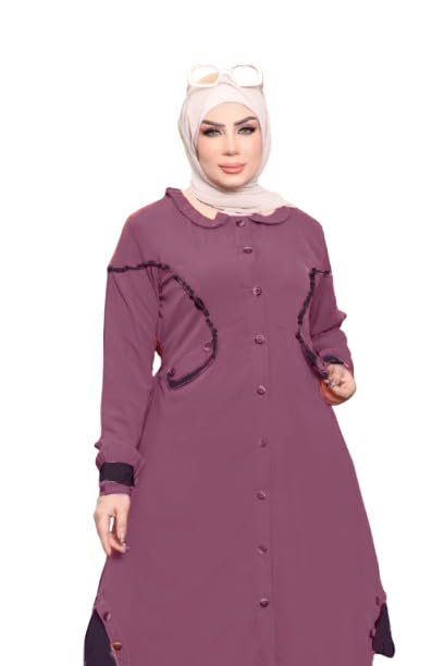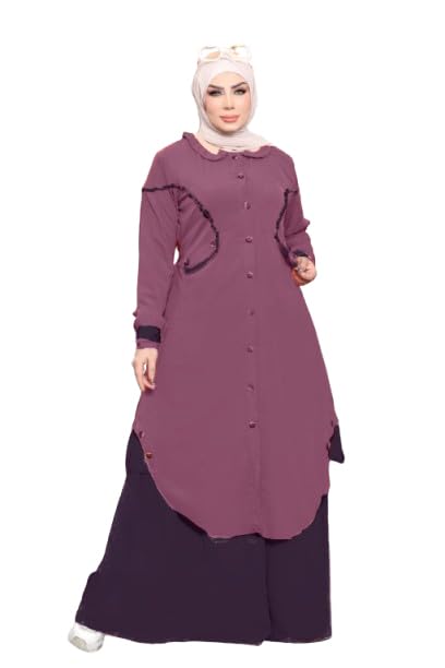 GAMAL SONS FOR ABAYA - عباية عدنا الاسلامية من جمال صنز، قطعتين (بلوزة وتنورة) كريب رويال موديل 7089، مقاس واحد للارتداء حتى 90 كيلو (كشمير)