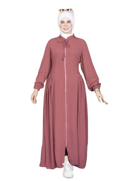 GAMAL SONS FOR ABAYA - عباية كريب فيرونا من جمال صنز 3043 للتمارين الرياضية بسحاب مقاس XXL 100 كيلو - لون كشمير