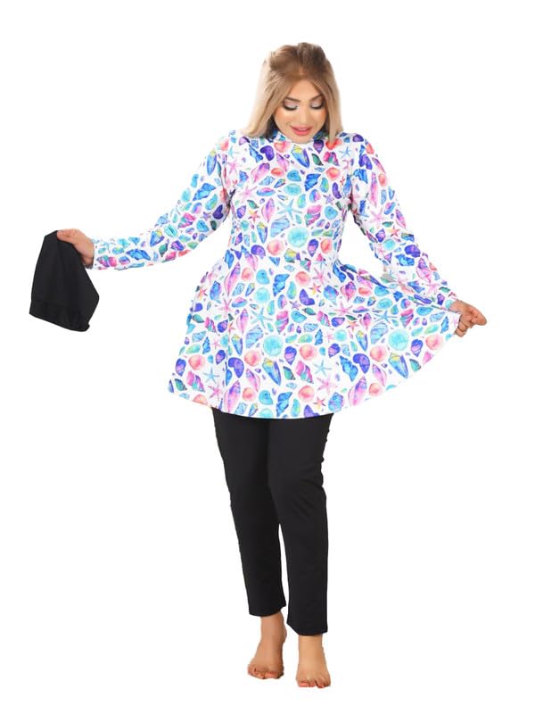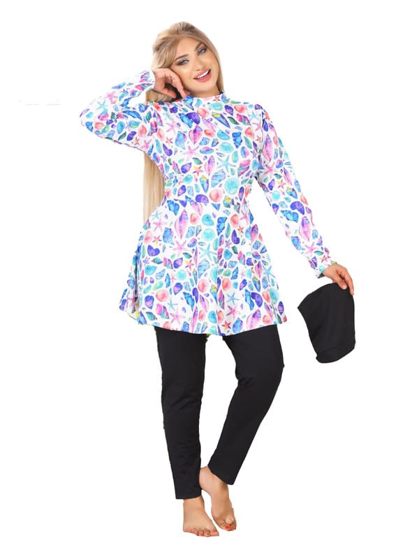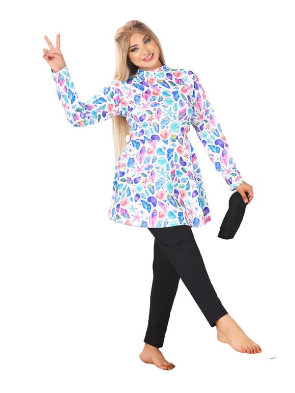 GAMAL SONS FOR ABAYA - مايوه شرعي 4 قطع بربطة أمامية وتصميم عصري مطبوع GAMAL SONS FOR ABAYA GS-061-42454-Parent