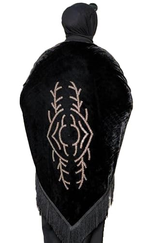 GAMAL SONS FOR ABAYA - شال قطيفه اسود استراس دهبي تصميم زخرفي متناظر يشبه العين أو شكل بيضاوي محاط بفروع أو أغصان شجر متفرعة. GAMAL SONS FOR ABAYA GS-1707-34223-Parent