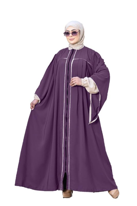 GAMAL SONS FOR ABAYA - عباية حريمي أنيقة بقصة واسعة ولون بني جذاب، مزينة بخطوط بلون بيج على الصدر والأكمام GAMAL SONS FOR ABAYA GS-8233-11567-Parent