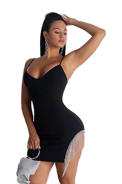 GAMAL SONS FOR ABAYA - فستان سهرة قصير حريمي أسود بحمالات رفيعة وتطريز شراريب لامعة GAMAL SONS FOR ABAYA GS-9457-1475-Parent