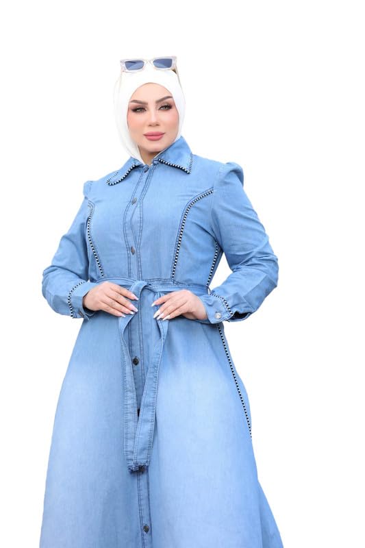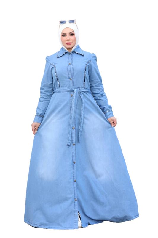GAMAL SONS FOR ABAYA - عباية نسائية طويلة جينز بتصميم مع حزام GAMAL SONS FOR ABAYA GS-5070-32913-Parent