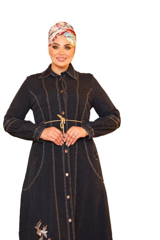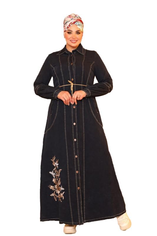 GAMAL SONS FOR ABAYA - عباية نسائية طويلة جينز بتطريز وحزام GAMAL SONS FOR ABAYA GS-4030-33410-Parent