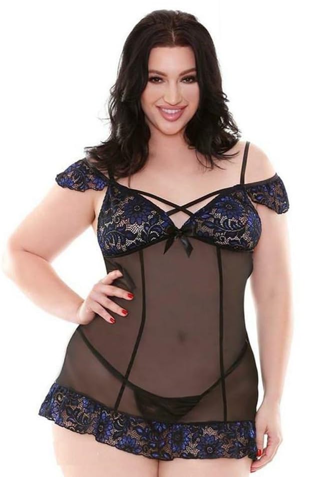 GAMAL SONS FOR ABAYA - فستان نوم لانجري شفاف نسائي مقاس كبير بدانتيل أزرق وأسود GAMAL SONS FOR ABAYA GS-S31-1629-Parent