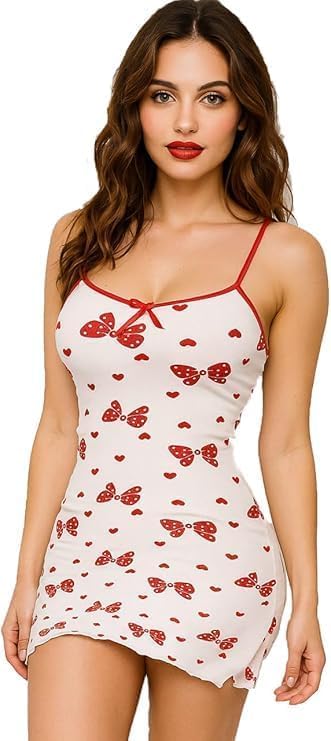 GAMAL SONS FOR ABAYA - قمصان نوم حريمي قصير بحمالات رفيعة مطبوع بفيونكات حمراء وقلب، تصميم مثير ومريح GAMAL SONS FOR ABAYA GS-1101-51160-Parent