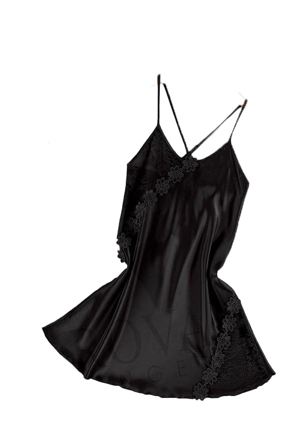 GAMAL SONS FOR ABAYA - قميص نوم نسائي من جمال صنز فور عباية من الساتان والدانتيل بتصميم متقاطع GS-948-51019 (اسود)