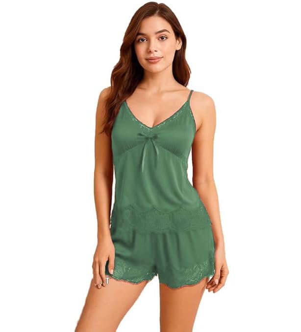 GAMAL SONS FOR ABAYA - طقم بيجامة نسائي قصير من الستان بتصميم أنيق مزين بالدانتيل GAMAL SONS FOR ABAYA GS-818-51100-Parent