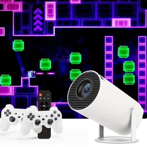 COOKAKA - جهاز عرض بروجكتور للألعاب و2 وحدة تحكم ألعاب كلاسيكية، جهاز عرض صغير مع واي فاي وبلوتوث، جهاز عرض أفلام صغير محمول للأماكن الخارجية، جهاز عرض اركيد فيجن ذكي HD مع أكثر من 10000 لعبة كلاسيكية مدمجة