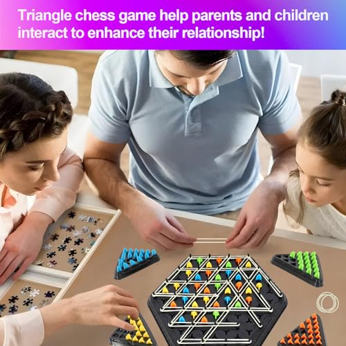 PEAKTOP - لعبة شطرنج مثلثة مع اربطة مطاطية، لعبة شطرنج مثلثة للاطفال والكبار، لعبة شطرنج مثلثة تفاعلية، لعبة شطرنج بسلاسل، احجية هندسية لشخصين الى 4 اشخاص للعائلة
