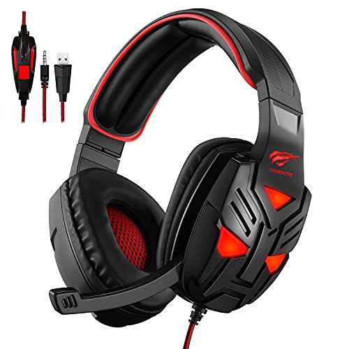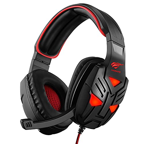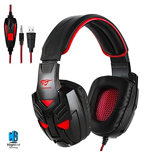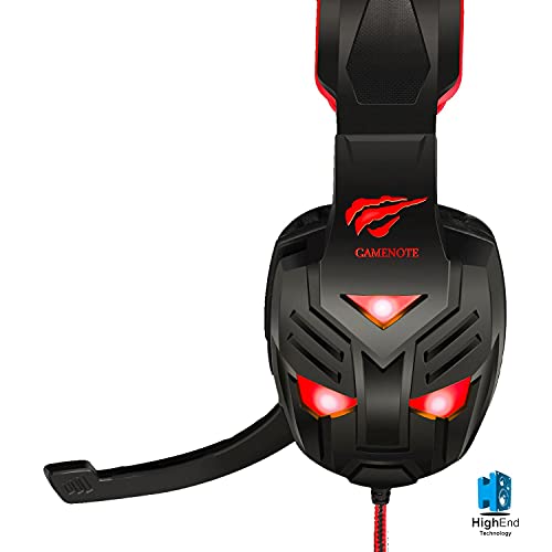 Gamenote - سماعات رأس ترانسفورمرز قابلة للطي للالعاب بإضاءة ليد باللون الاحمر مزودة بميكروفون واحد ومنفذ ايه يو اكس 3.5 ملم للموبايل وبلاي ستيشن 4 موديل HV-2229D من جيم نوت، اسود واحمر، سلكي