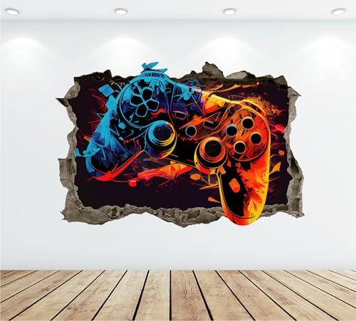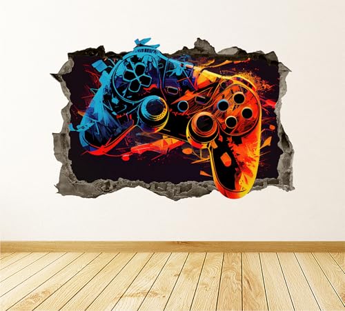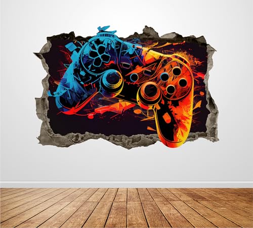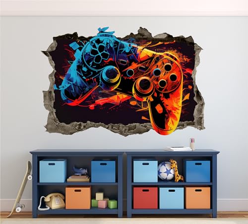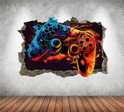 LOVELY Decals - بوستر حائط فني ثلاثي الأبعاد بتصميم وحدة تحكم الألعاب، بوستر مطبع قابل للتقشير واللصق، هدية لتزيين غرفة نوم الأطفال وغرفة اللعب