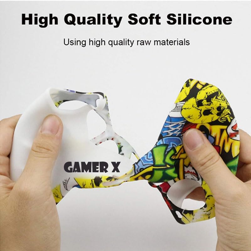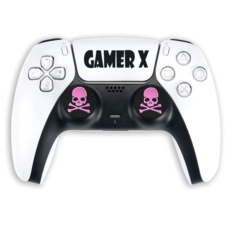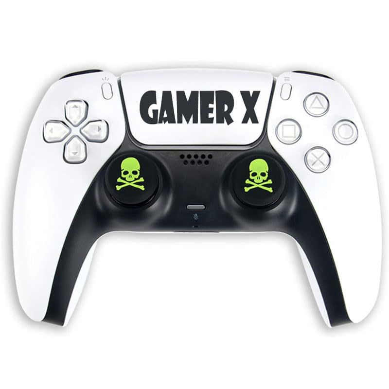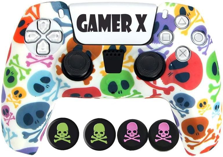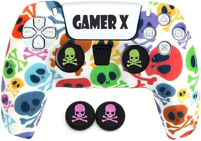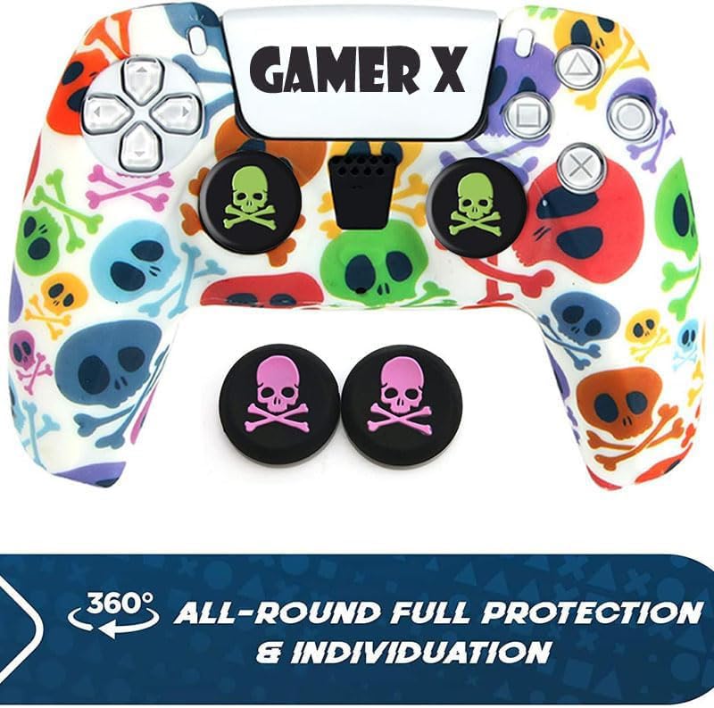 Gamer X - جراب سيليكون لوحدة تحكم بلاي ستيشن 2 بنمط جمجمة مع 5 أزواج من مقابض الإبهام على شكل جمجمة من جيمر اكس