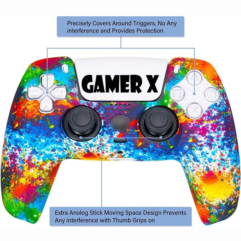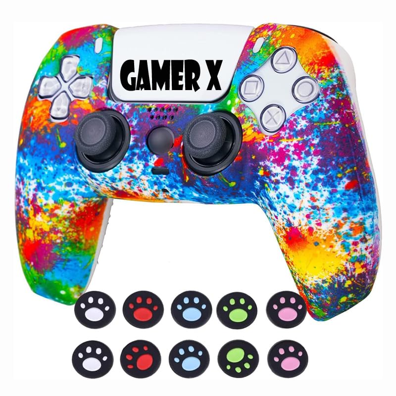 Gamer X - جراب سيليكون لوحدة تحكم بلاي ستيشن 5 متعدد الألوان مع 5 أزواج من مقابض الإبهام على شكل مخالب قطة من جيمر اكس