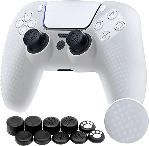 Gamer X - جراب سيليكون شفاف لذراع تحكم بلاي ستيشن 5 مع 10 واقيات ازرار