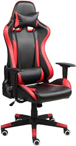 Generic - كرسي العاب، كرسي مكتب مريح بنمط السباق، اسود واحمر، جلد البولي يوريثين، ظهر مرتفع مع مسند راس ودعم اسفل الظهر، ارتفاع قابل للتعديل