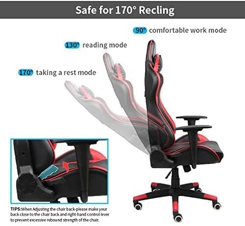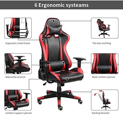 - تصميم مريح: كرسي ألعاب بنمط السباق مع ظهر مرتفع ومسند رأس مدمج ووسادة دعم أسفل الظهر لتوفير أقصى قدر من الراحة أثناء اللعب أو جلسات العمل الطويلة