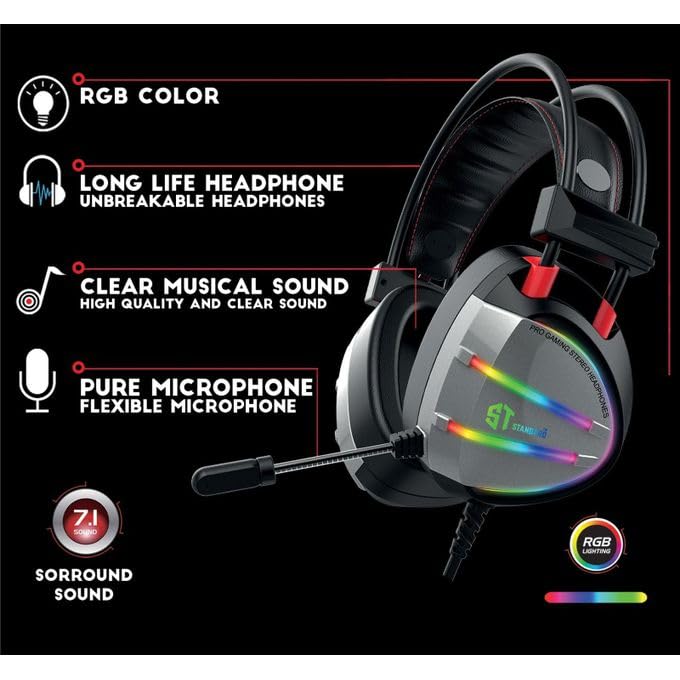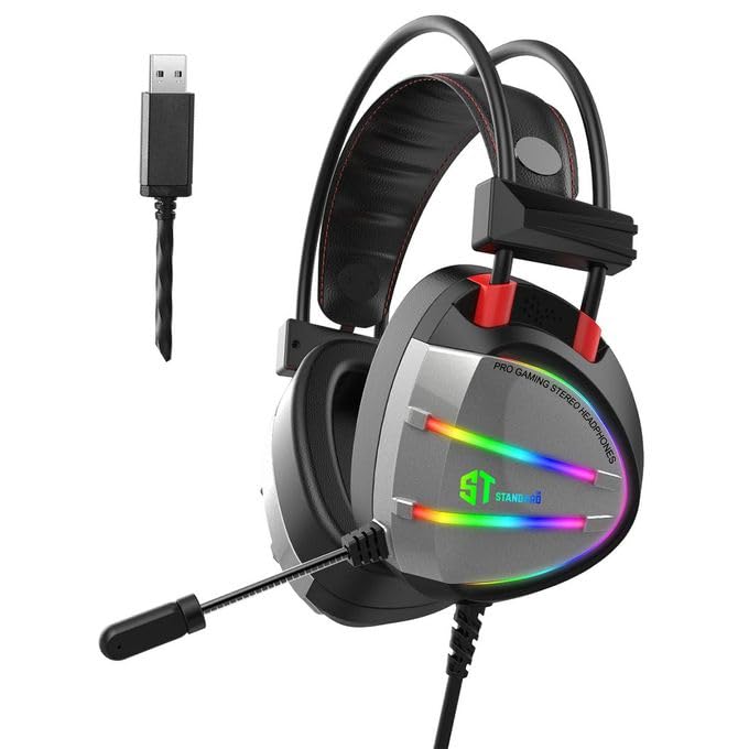 ST-STANDARD - سماعة رأس للألعاب اس تي ستاندرد GM-07 - USB 7.1 (360 درجة) صوت محيطي - الفضاء اللوني ار جي بي - ميكروفون بخاصية إلغاء الضوضاء - وسائد الأذن من الميموري فوم لارتداء مريح