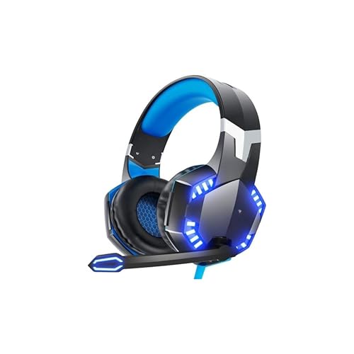 Generic - سماعة راس للالعاب مع ميكروفون، اضواء LED، ازرق واسود، فوق الاذن، سلكية