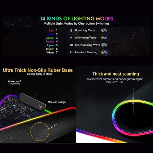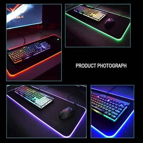 Generic - قاعدة ماوس للالعاب 700 × 300 × 4 ملم، قاعدة ماوس وكيبورد للالعاب مع قاعدة مطاطية غير قابلة للانزلاق مع 7 اوضاع اضاءة، قاعدة ماوس باضاءة LED مضيئة للاعبي الكمبيوتر، اسود