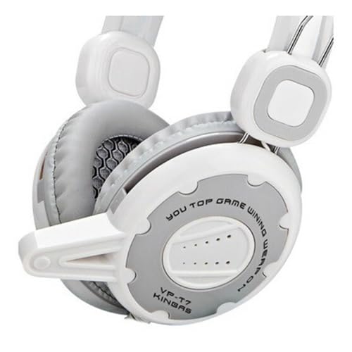 Generic - سماعة رأس سلكية ستيريو للألعاب T7 بصوت باس مع منفذ صوت 3.5 ملم مزودة بميكروفون ساوند سمارت مدمج بتقنية إلغاء الضوضاء للكمبيوتر واللاب توب، لون أبيض رمادي