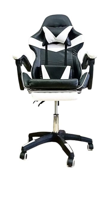 Generic - كرسي ألعاب بلون أبيض وأسود بتصميم مساند يد مثبتة