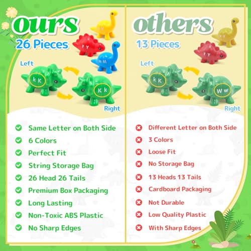 - 【ألعاب المهارات الحركية الدقيقة】تم تصميم مجموعة مطابقة حروف الديناصور للأطفال الصغار من 1 إلى 3 سنوات، كما أن الحجم المناسب للأطفال والاتصال المركزي السلس يجعل من السهل على الأطفال الصغار حمل الديناصور الصغير وتجميعه، مصممة لتعزيز تنمية المهارات الحركية الدقيقة. من خلال التقاط الحرف المقابل وجمعها معًا، مما يعزز نموهم الحسي.