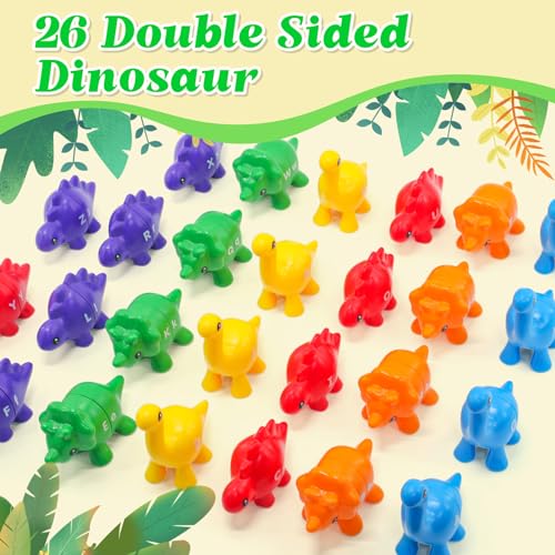 - 【مجموعة ألعاب قيمة رائعة】تحتوي العبوة على 26 ديناصور ملون وحروف صغيرة مطبوعة على كلا الجانبين. هناك 6 أنواع من الديناصورات، بما في ذلك تيرانوصورس ريكس، وترايسيراتوبس، وبراكيوسورس، وباراسورولوفوس، وأنكيلوصور، وستيجوسورس. ألعاب الديناصورات اللطيفة هي المفضلة للأطفال الصغار ويمكن أن تجلب لهم الكثير من المرح.