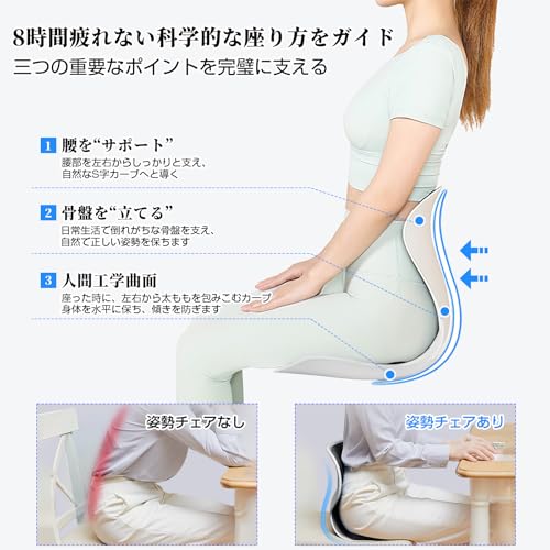 - (يوفر وضعية طبيعية وجميلة بمجرد الجلوس) نقدم لك كرسي يدعم وضعيتك على الفور. ما عليك سوى الجلوس وضبط وضعيتك على الفور كما لو كنت تسترشد بمدرب فردي. وهذا يسمح للعمود الفقري بالتمدد بشكل طبيعي وتحريره الشد. يعمل على تحسين عادات الجلوس السيئة بشكل فعال واستعادة وضع الجلوس المناسب. هذا سيقلل من آلام الظهر ويقلل من التعب